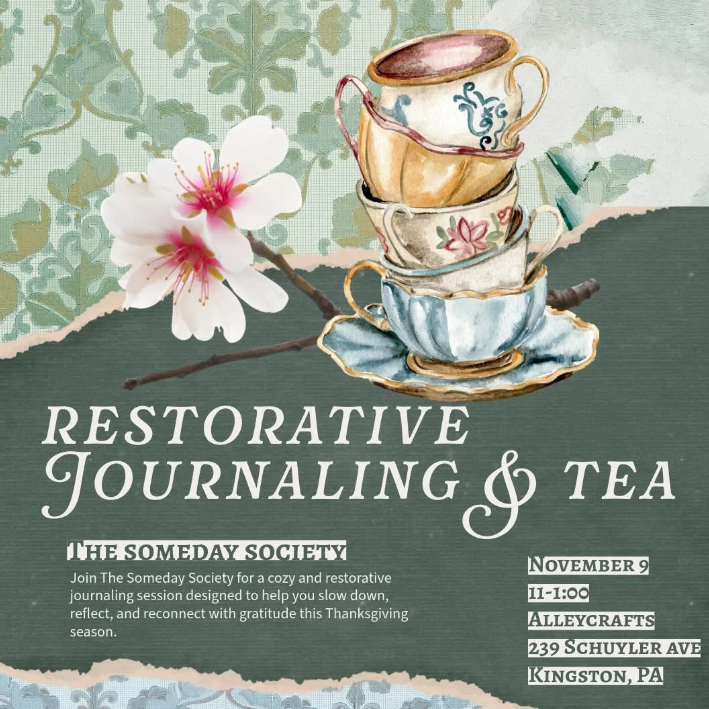 Join us, for a cozy and restorative journaling session designed to help you slow down, reflect, and reconnect with gratitude this Thanksgiving season. Hosted in the inviting atmosphere of Alley Crafts, this event blends relaxation and creativity through journaling, tea, and gentle meditation.